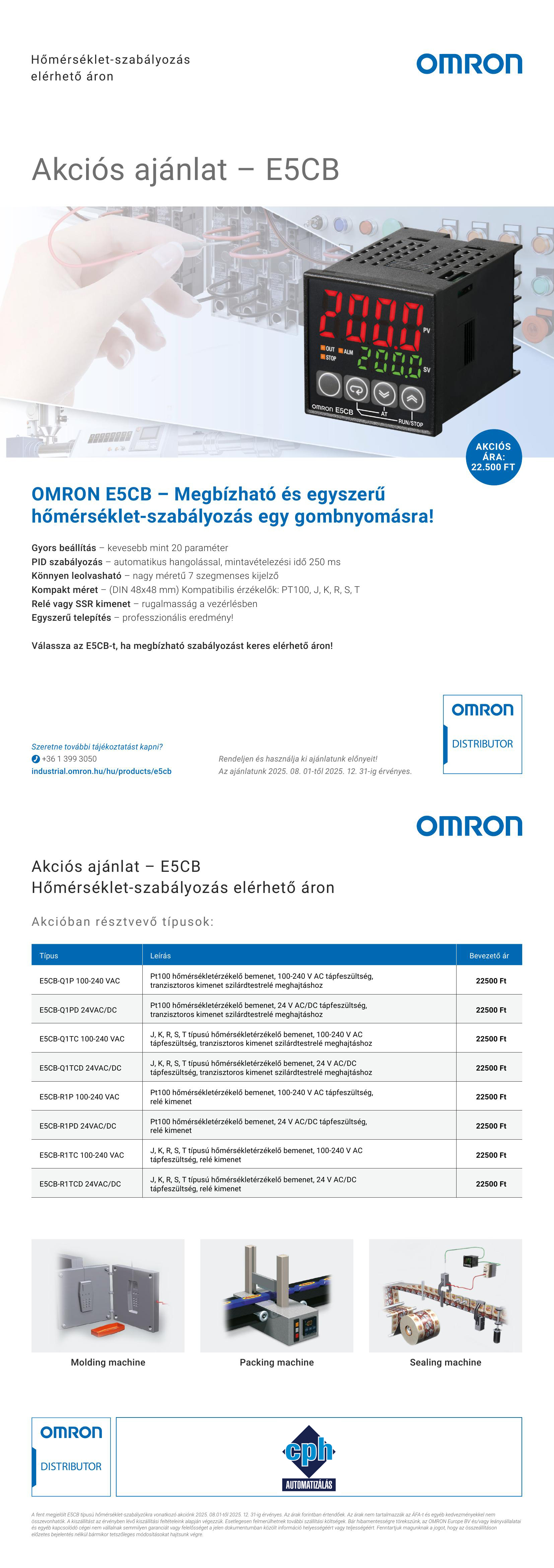Szerezze be az OMRON E5CB sorozatot 22.500 Ft-tól, és élvezze a gyors beállítást, pontos szabályozást és kompakt kivitel előnyeit!