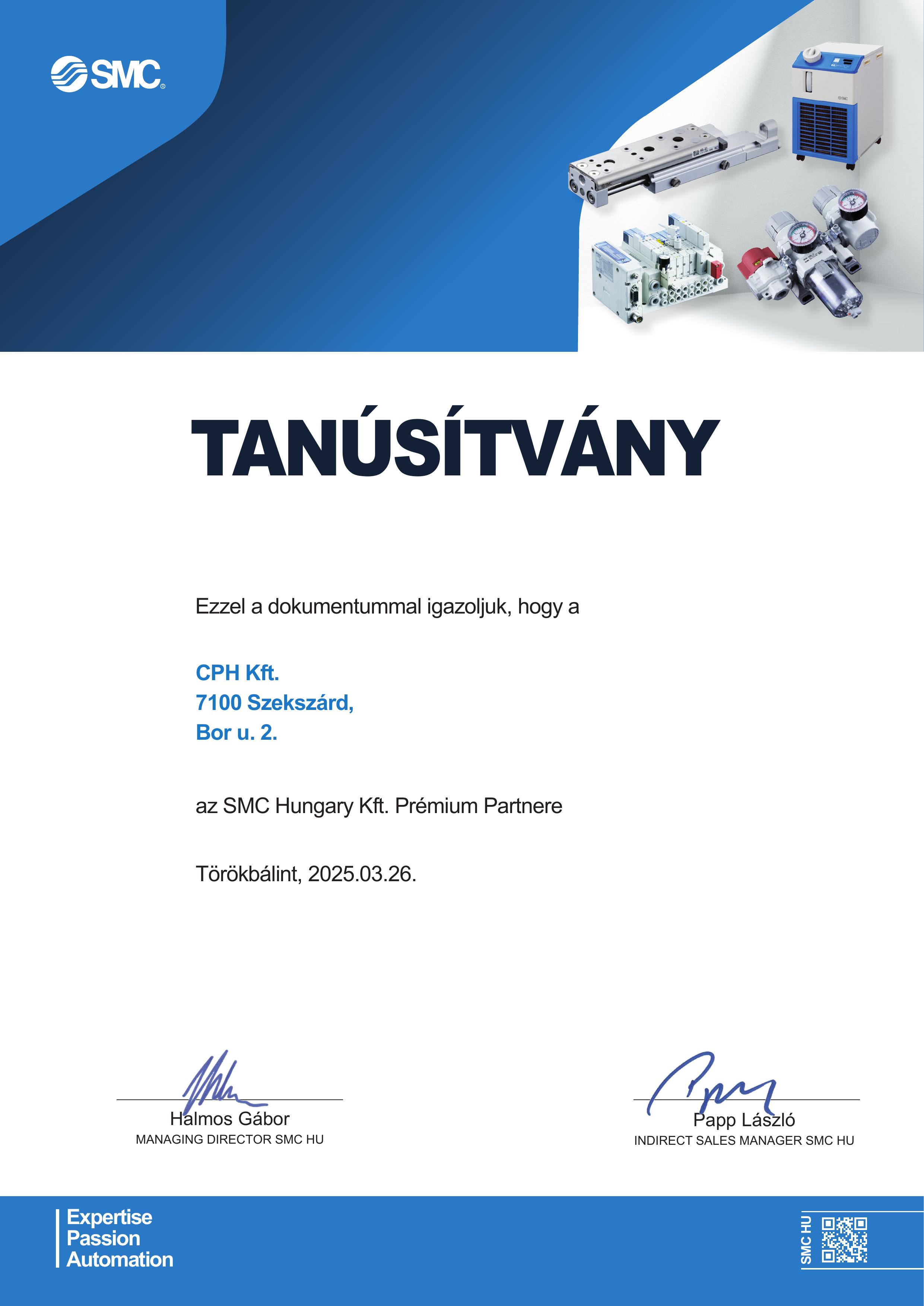 Cégünk hivatalosan is az SMC Hungary Kft. Prémium Partnere.